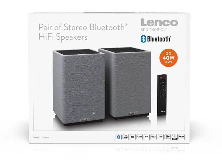 Lenco SPB-240BKGY – HiFi Stereo Bluetooth® Hoparlör Çifti – Şık tasarımda güçlü ses – Siyah/Gri